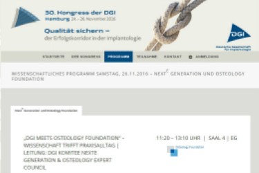Wissenschaft trifft Praxisalltag - unter diesem Motto findet im Rahmen des 30. Jahreskongresses der Deutschen Gesellschaft für Implantologie, DGI, in Hamburg, Deutschland, ein gemeinschaftlich organisiertes Symposium statt. Leitung: DGI Komitee NextE Generation & Osteology Expert Council